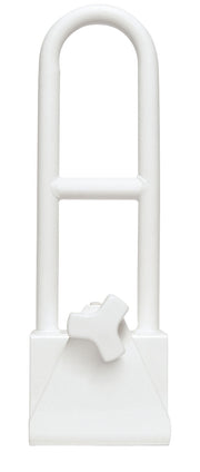 The rail has a corrosion resistant steel with powder coated finish and fits most tubs with a wall thickness of 3” to 6 3/4” / 7 to 17.14 cm. The clamp is lined with non-staining rubber pads to securely attach for maximum safety. Provides stability when getting in and out of the bathtub