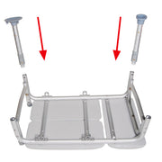 - It also has a satin finished aluminum frame, wide base, and a shower curtain slot